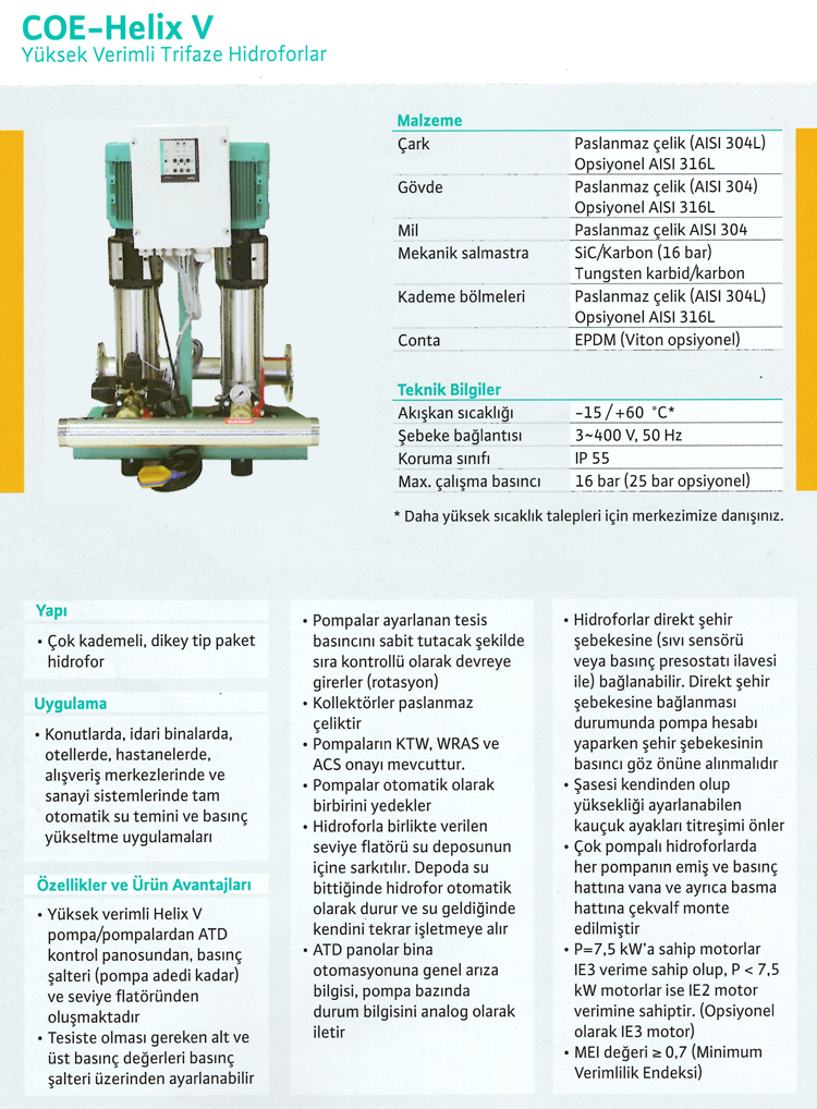 Wilo COE2-Helix V 1610 (2x7,5kW 3"/2½") Yüksek Verimli Trifaze Hidrofor
