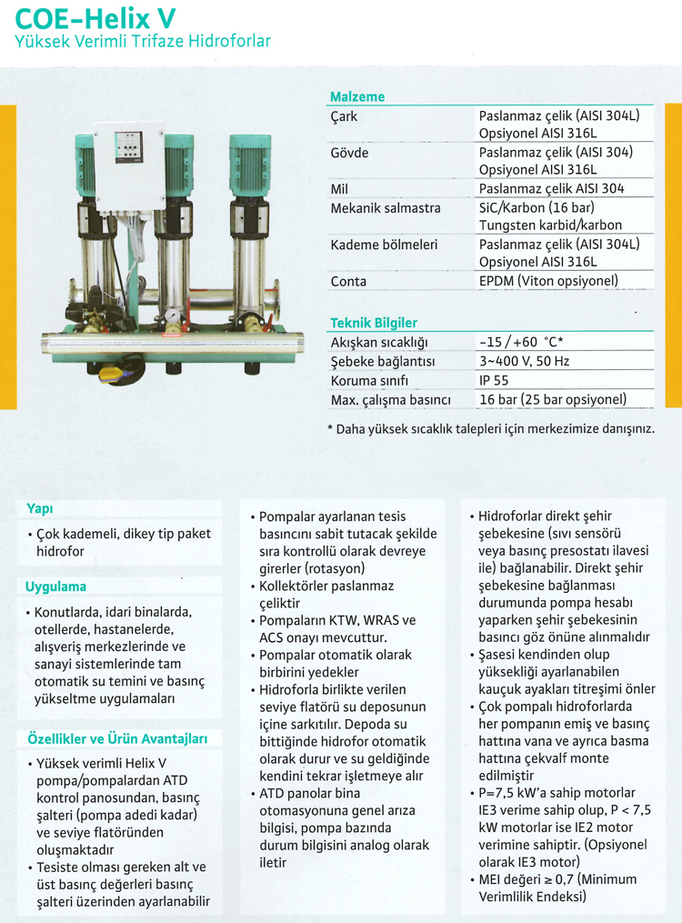 Wilo COE3-Helix V 1607 (3x5,5kW DN100/3") Yüksek Verimli Trifaze Hidrofor