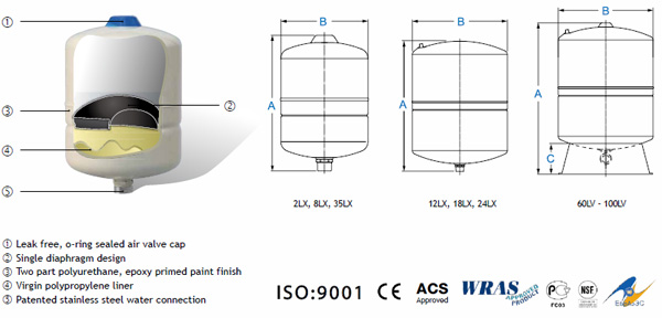 Global GCB-200LV Dik Çelik Patlamayan İçme Suyu Genleşme Tankı