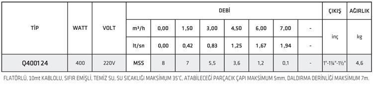 İmpo Q400124 Drenaj Dalgıç Pompa