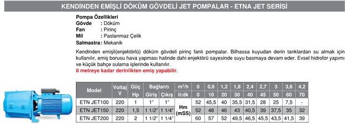 Etna Etn Jet 200 Kendinden Emişli Döküm Gövdeli Jet Pompa