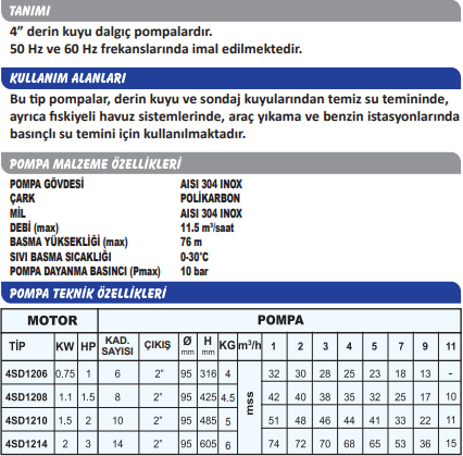 Sumak 4SD1210 (2HP) Derin Kuyu Dalgıç Pompa