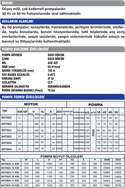 Sumak SHT50/3 18.5 Kw Kademeli Hidrofor