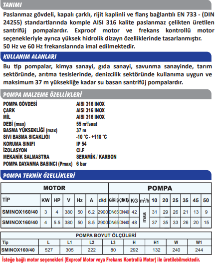 Sumak SMINOX160/40 4HP Paslanmaz Santrifüj Pompa