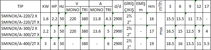 Sumak SMINOX A-300/2 X - SMINOX A-300T/2T X Paslanmaz Santrifüj Pompa