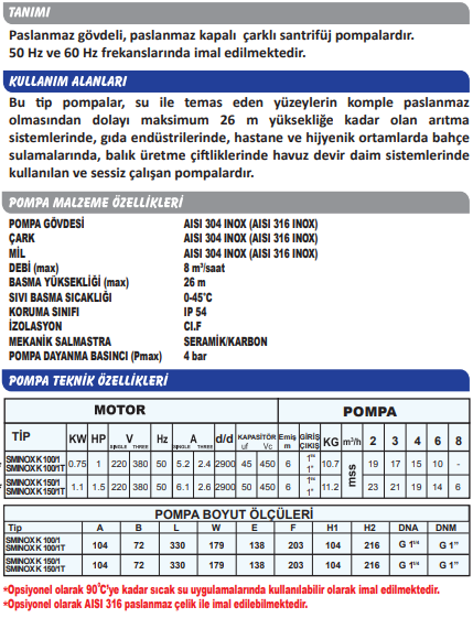Sumak SMINOX K-100/1 - Sumak SMINOX K-100/1T Paslanmaz Santrifüj Pompa