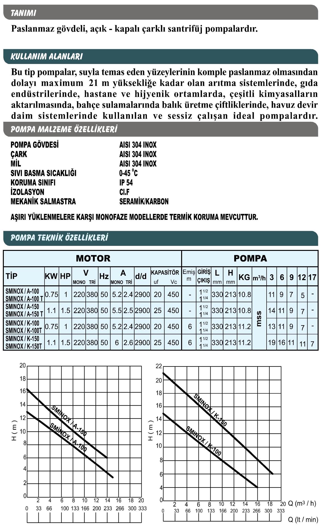 Pompanın yapı elemanları komple paslanmaz çeliktir.