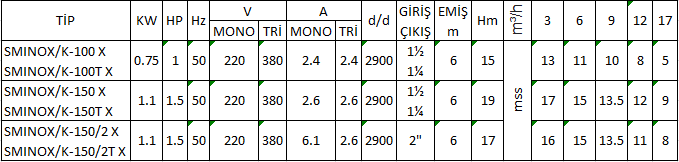 Sumak SMINOX K-100 X - SMINOX K-100T X Paslanmaz Santrifüj Pompa