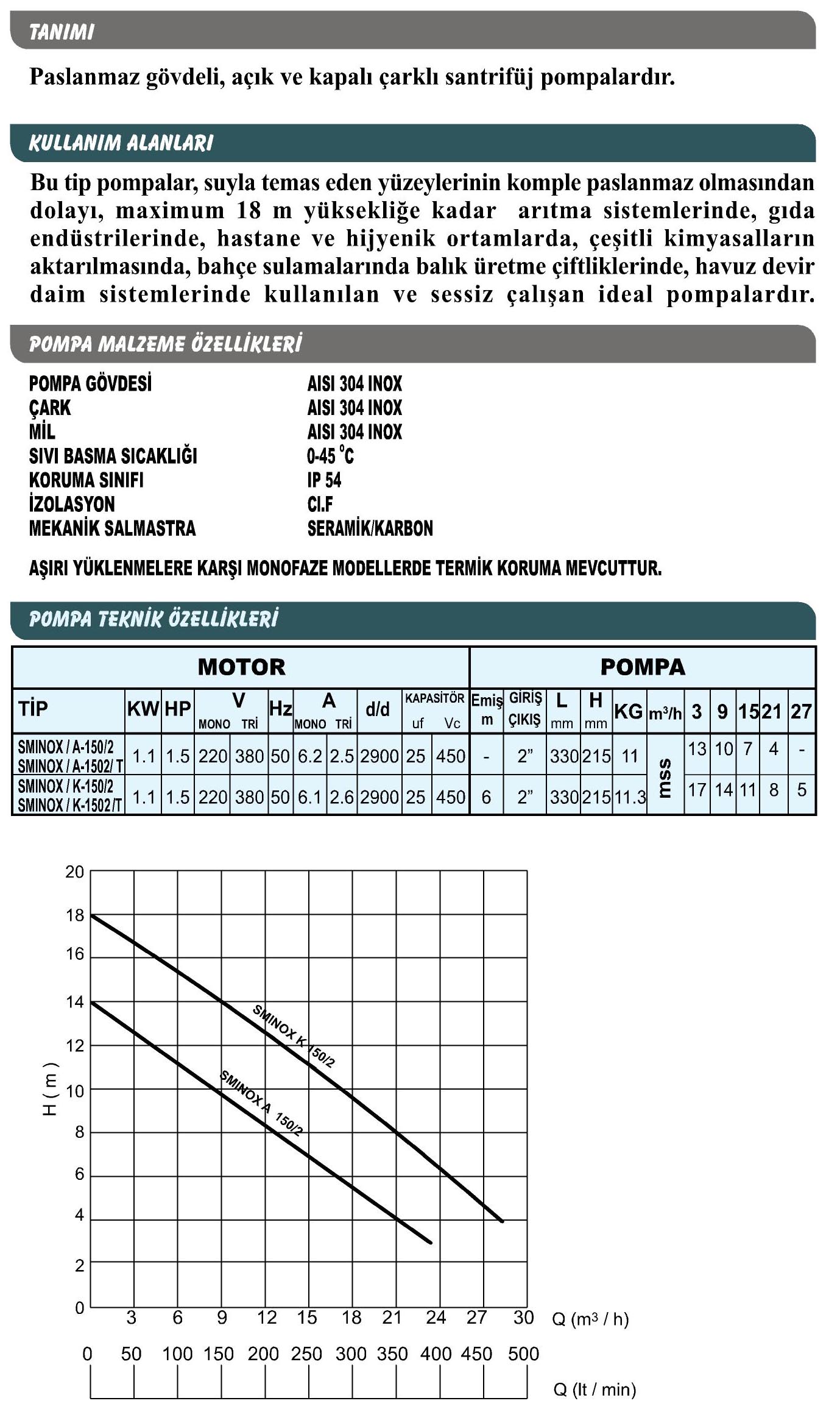 Pompanın yapı elemanları komple paslanmaz çeliktir.