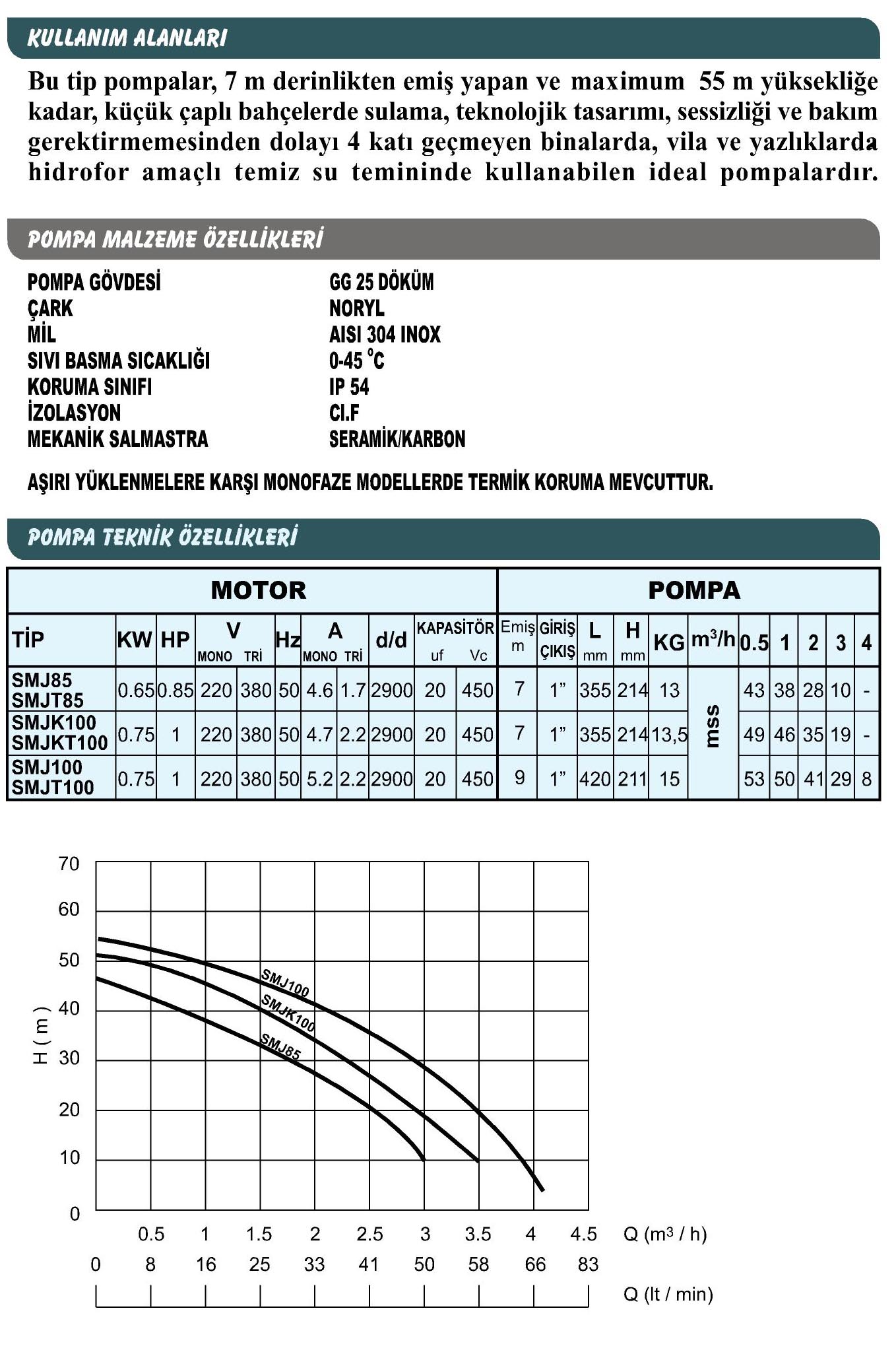 Sumak SMJ100 - SMJT100 Jet Pompa