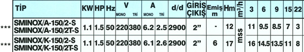 Sumak SMINOX/A-150/2T-S Sıcak Su Santrifüj Pompası