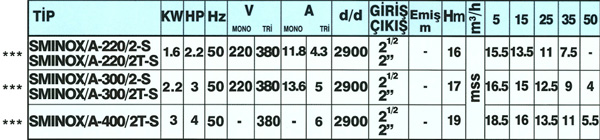 Sumak SMINOX/A-220/2-S Sıcak Su Santrifüj Pompası
