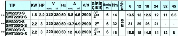 Sumak SMT300/3-S Sıcak Su Santrifüj Pompası