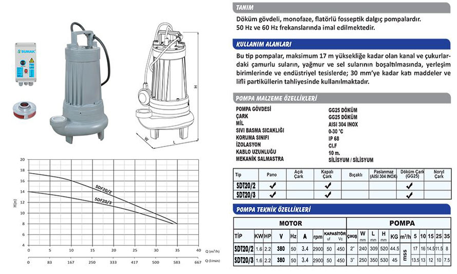 Sumak SDT20/3 Foseptik Dalgıç Pompa
