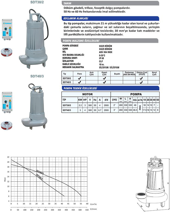 Sumak SDT30/2 Foseptik Dalgıç Pompa 10m kablo, flatör ve kumanda panosu fiyata dahidir.