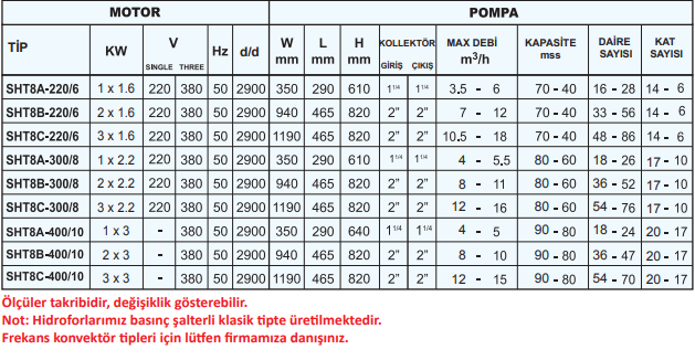 Sumak SHT8C 400/10 Trifaze Kademeli Hidrofor