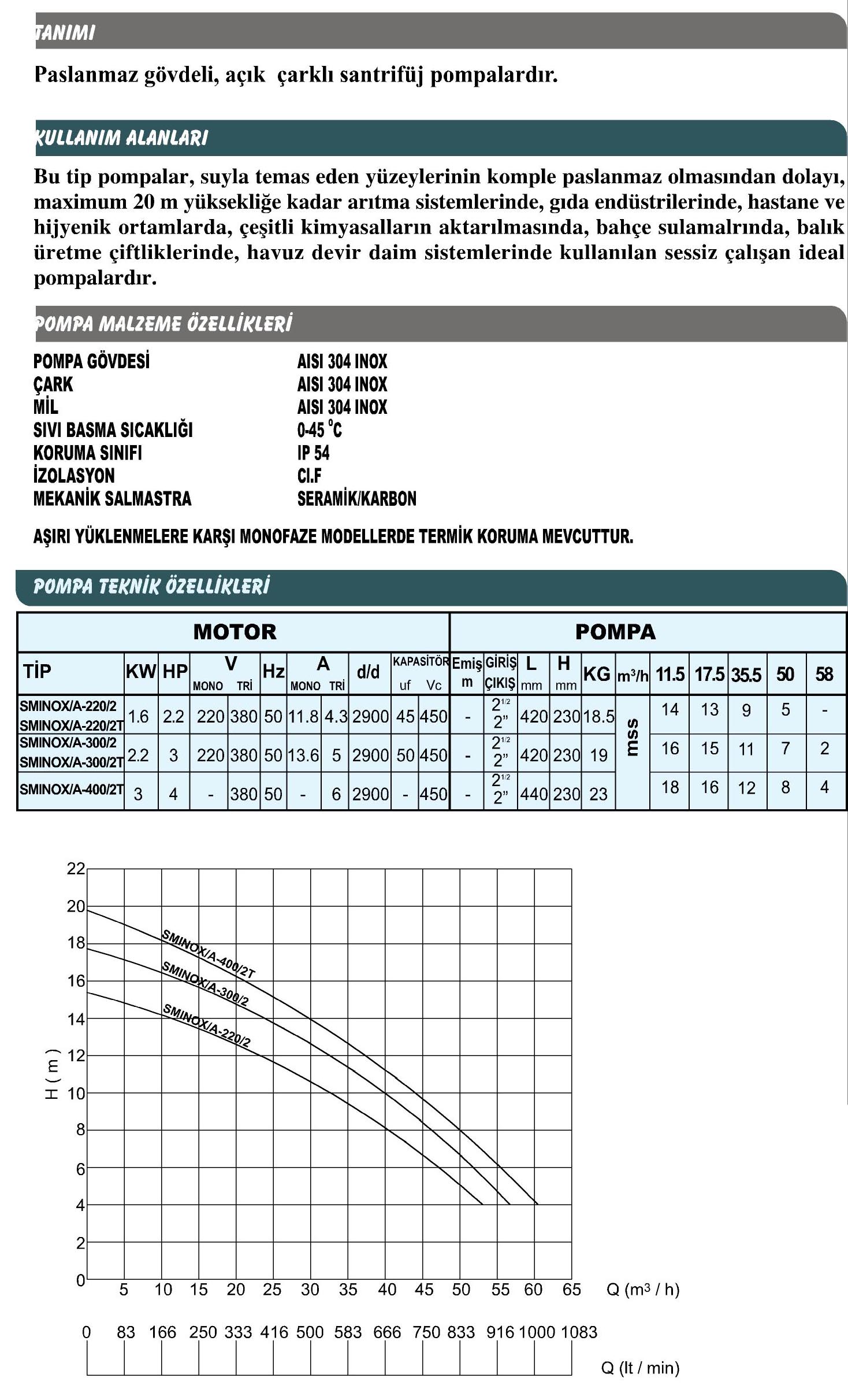 Pompanın yapı elemanları komple paslanmaz çeliktir.