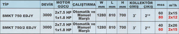 Sumak SMKT 750/2 EDJY Dizel + Elektrikli + Joker Yangın Pompası