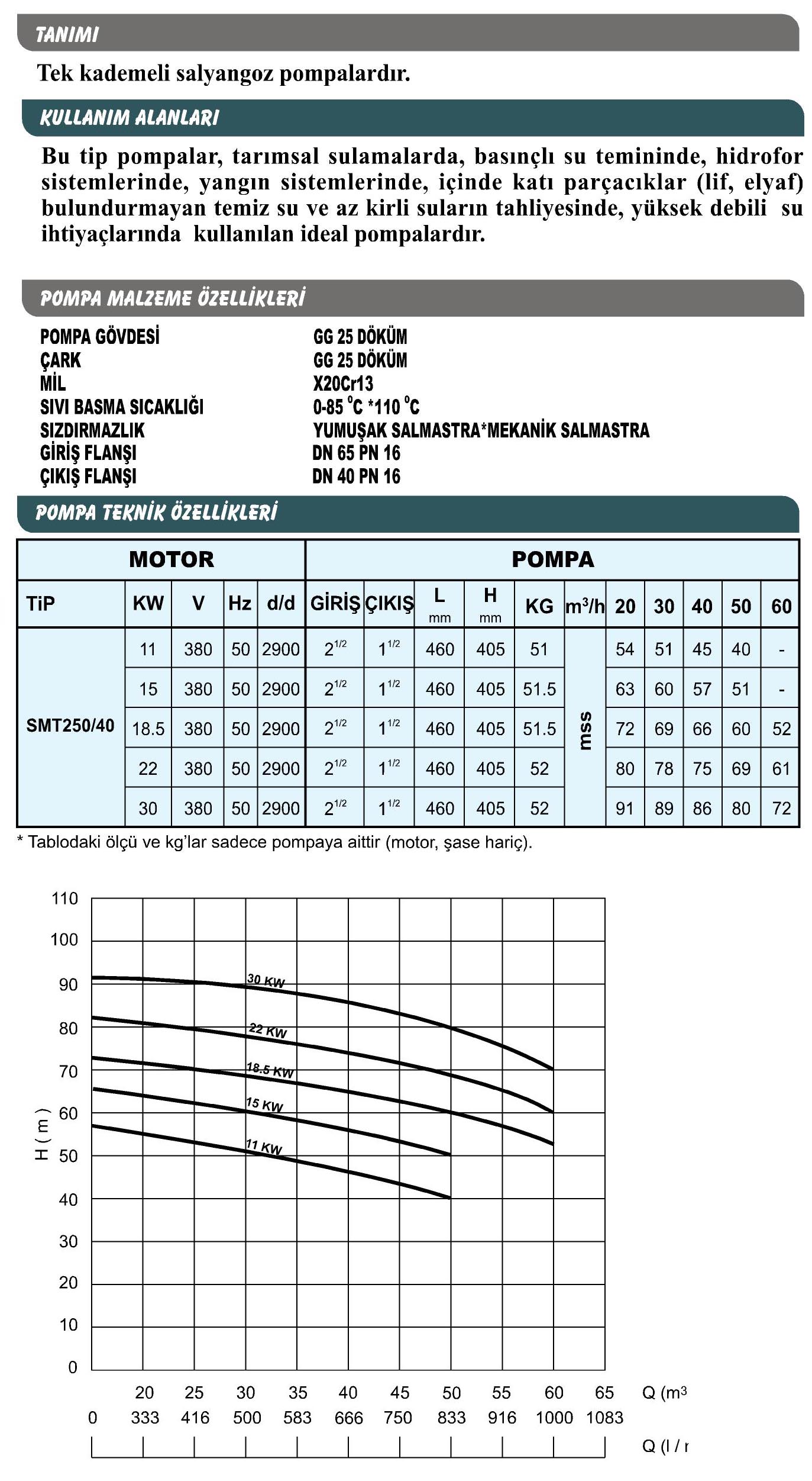 Sumak SMT250/40 11 2900 d/d Salyangoz Pompa
