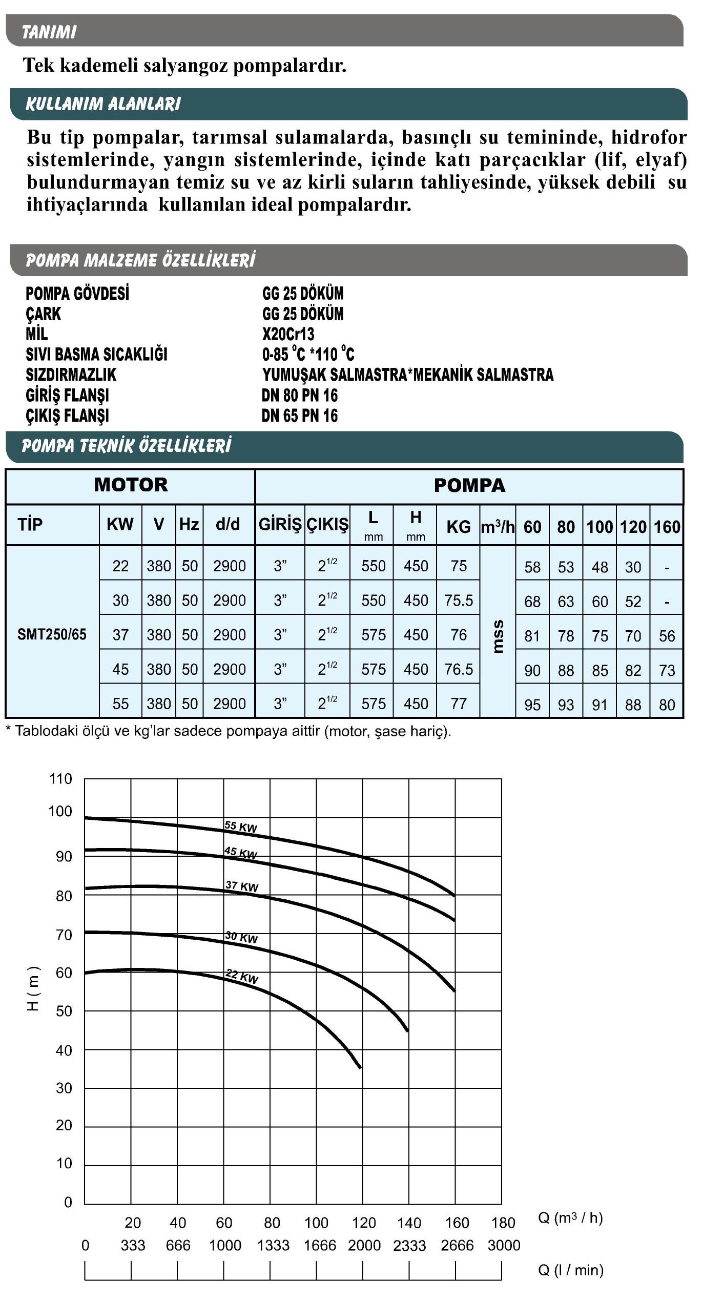 Sumak SMT250/65 22 2900 d/d Salyangoz Pompa
