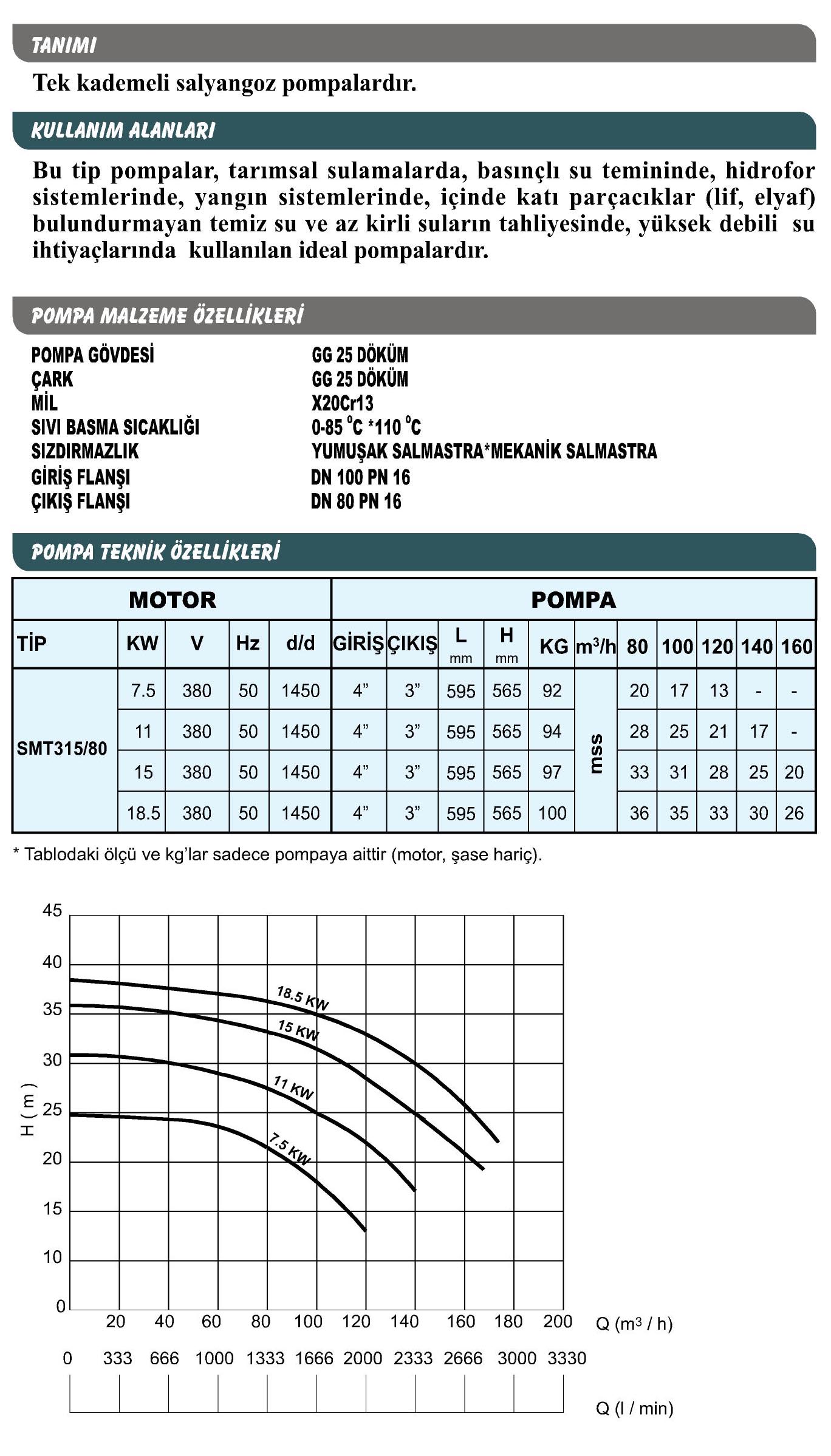 Sumak SMT315/80 7.5 KW 1450 d/d Salyangoz Pompa