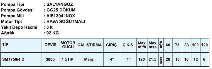Sumak SMT750/4 - 7.5HP Marşlı Dizel Motopomp
