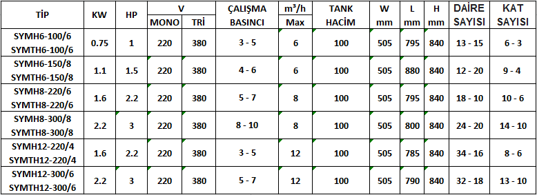 Sumak SYMH6-150/8 - SYMTH6-150/8 9 Kat 12 Daire Jet Pompalı Paket Hidrofor (Fabrika Çıkışlı)