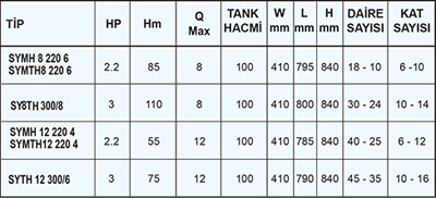 Sumak SYMTH8-220/6 6 Kat 18 Daire Yatay Kademeli Paket Hidrofor (Fabrika Çıkışlı)