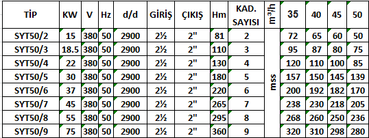Sumak SYT50/8 ( 2900 d/d ) Yatay Milli Kademeli Pompa